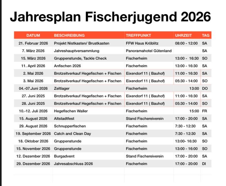 Termine Fischerjugend 2026